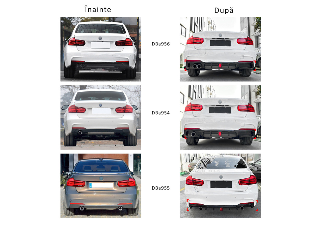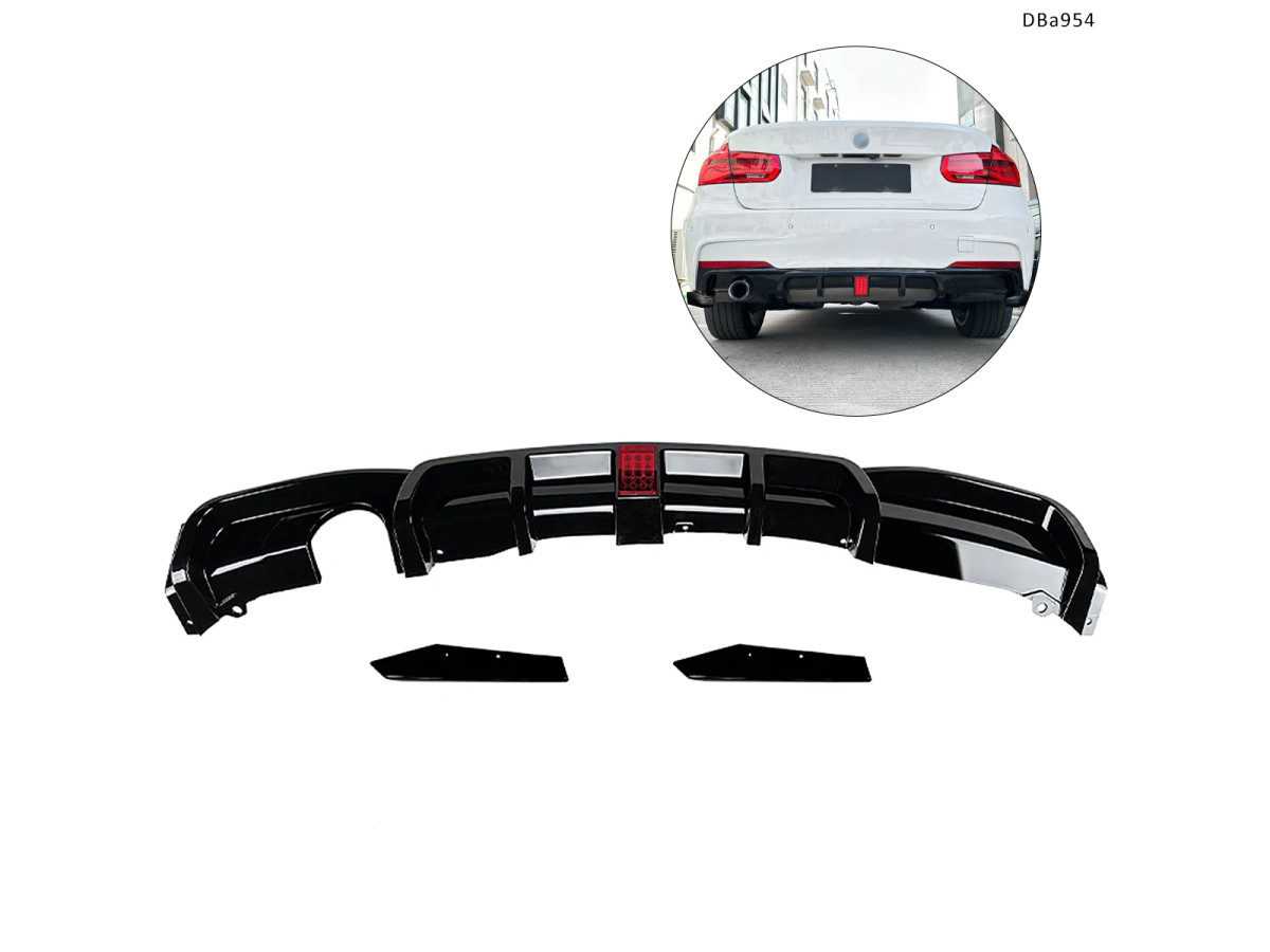 Difuzor bara spate tuning cu lumini LED și splittere pentru BMW 3 F30 M cu evacuare simplă – DBa954