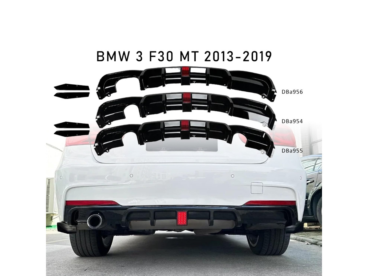 Acest difuzor tuning pentru bară spate, echipat cu lumini LED integrate și splittere laterale, este conceput special pentru BMW Seria 3 F30 M Sport (2013–2019). Designul său include un singur orificiu de evacuare (tip OX-XX), fiind astfel compatibil exclusiv cu modelele care dispun de o evacuare simplă.