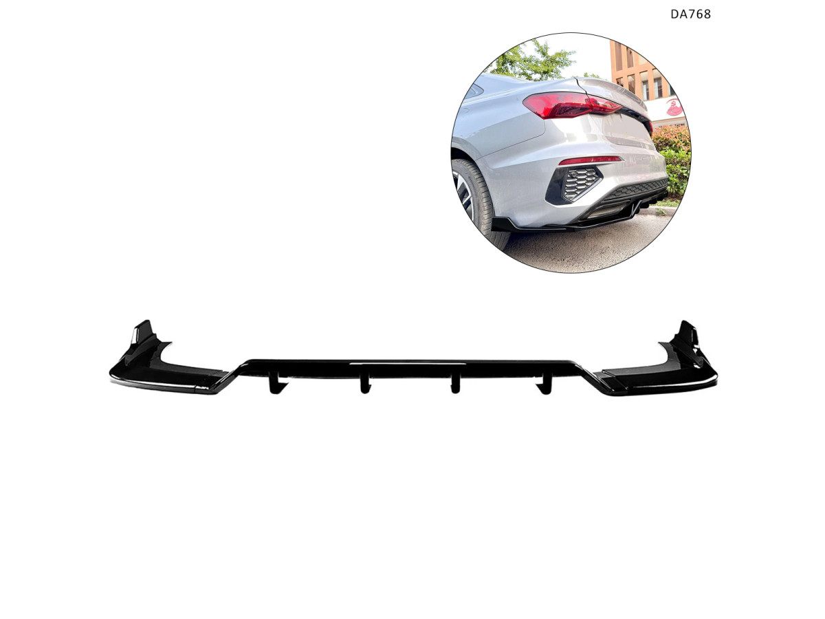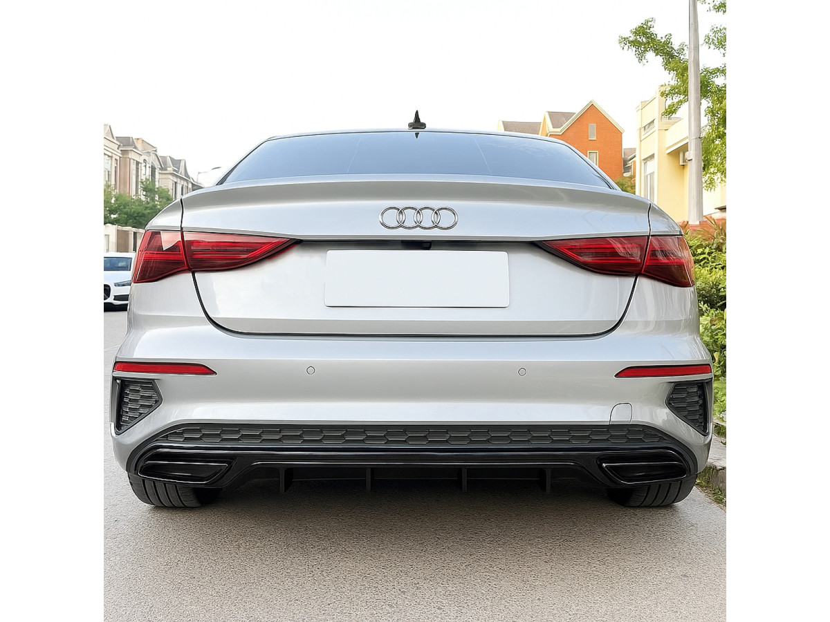 Acest difuzor de aer pentru bara spate Audi A3 8Y Sedan 2021-2024 este ideal atât pentru utilizare zilnică, cât și pentru pasionații de tuning care doresc să își personalizeze vehiculul. Se potrivește perfect în combinație cu un eleron portbagaj, spoiler de plafon și praguri laterale pentru un look complet sportiv.