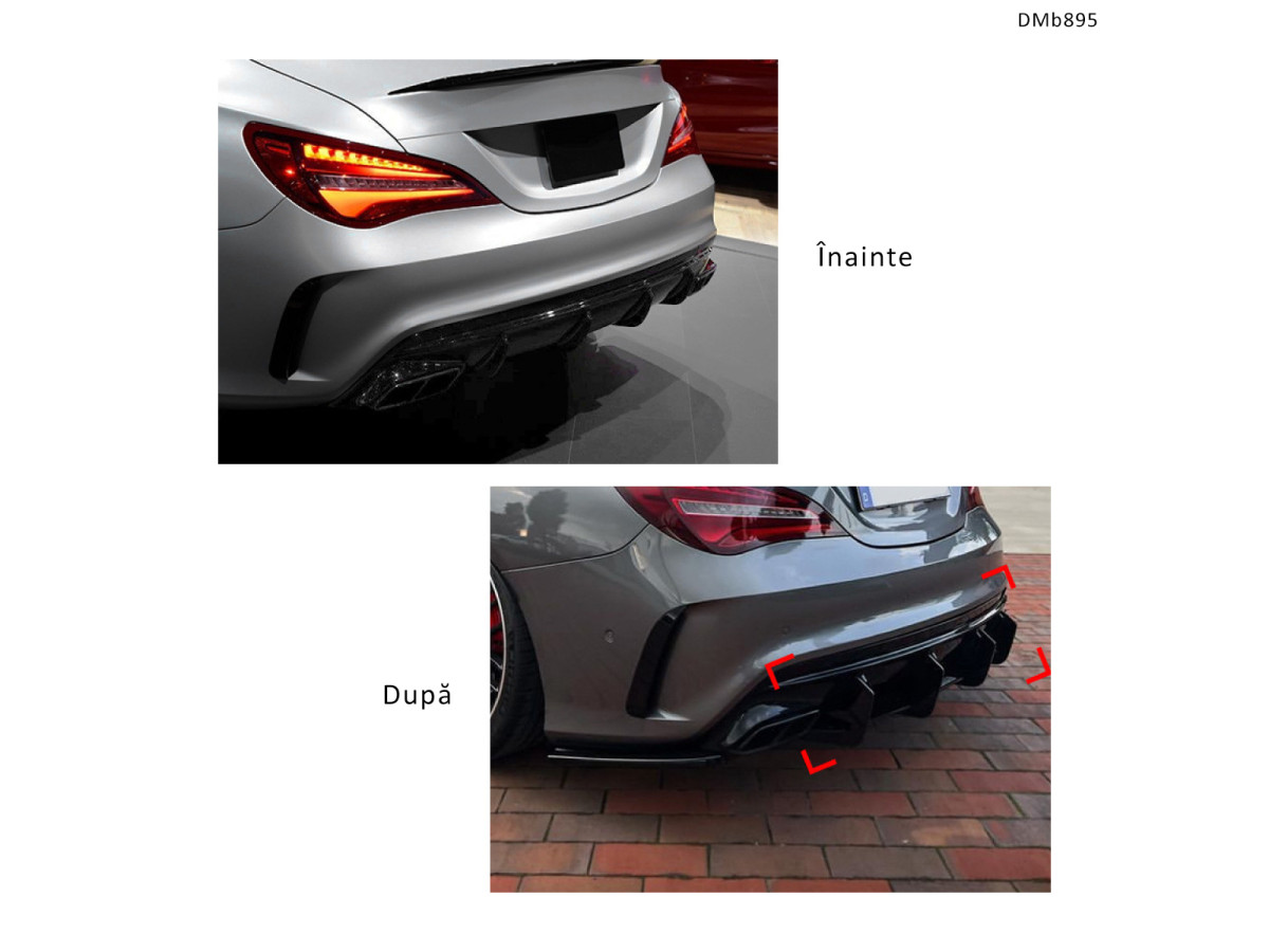 Difuzorul tuning pentru spate Mercedes CLA45 AMG (2016–2019) – DMb896 este un accesoriu care transformă complet aspectul mașinii, oferindu-i un stil complet AMG Performance. Combină calitatea superioară, designul agresiv și montajul facil, fiind una dintre cele mai căutate soluții tuning pentru modelul CLA.