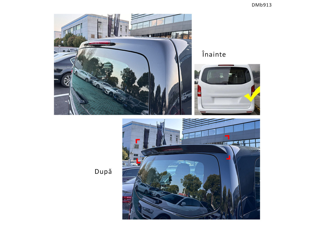 Eleron spate / aripă tuning pentru portbagaj Mercedes V-Class W447 V260 (2016-2020) – DMb913 este un accesoriu practic și elegant, conceput pentru a îmbunătăți aspectul exterior al mașinii tale. Fabricat din material ABS rezistent, cu finisaj negru lucios, acest spoiler se montează direct pe capacul portbagajului, oferind un stil sportiv și complet AMG.