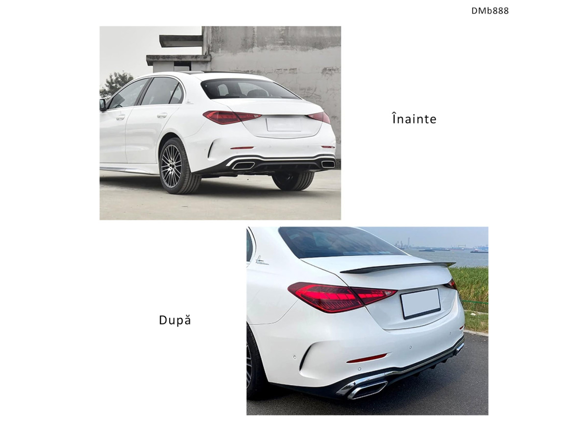 Oferă modelului tău Mercedes C-Class W206 2022+ un finisaj modern și sportiv cu eleronul tuning pentru portbagaj DMb888. Acest accesoriu stil lip spoiler este inspirat din designul AMG și este proiectat să evidențieze liniile elegante ale mașinii tale, fără a afecta aspectul original.