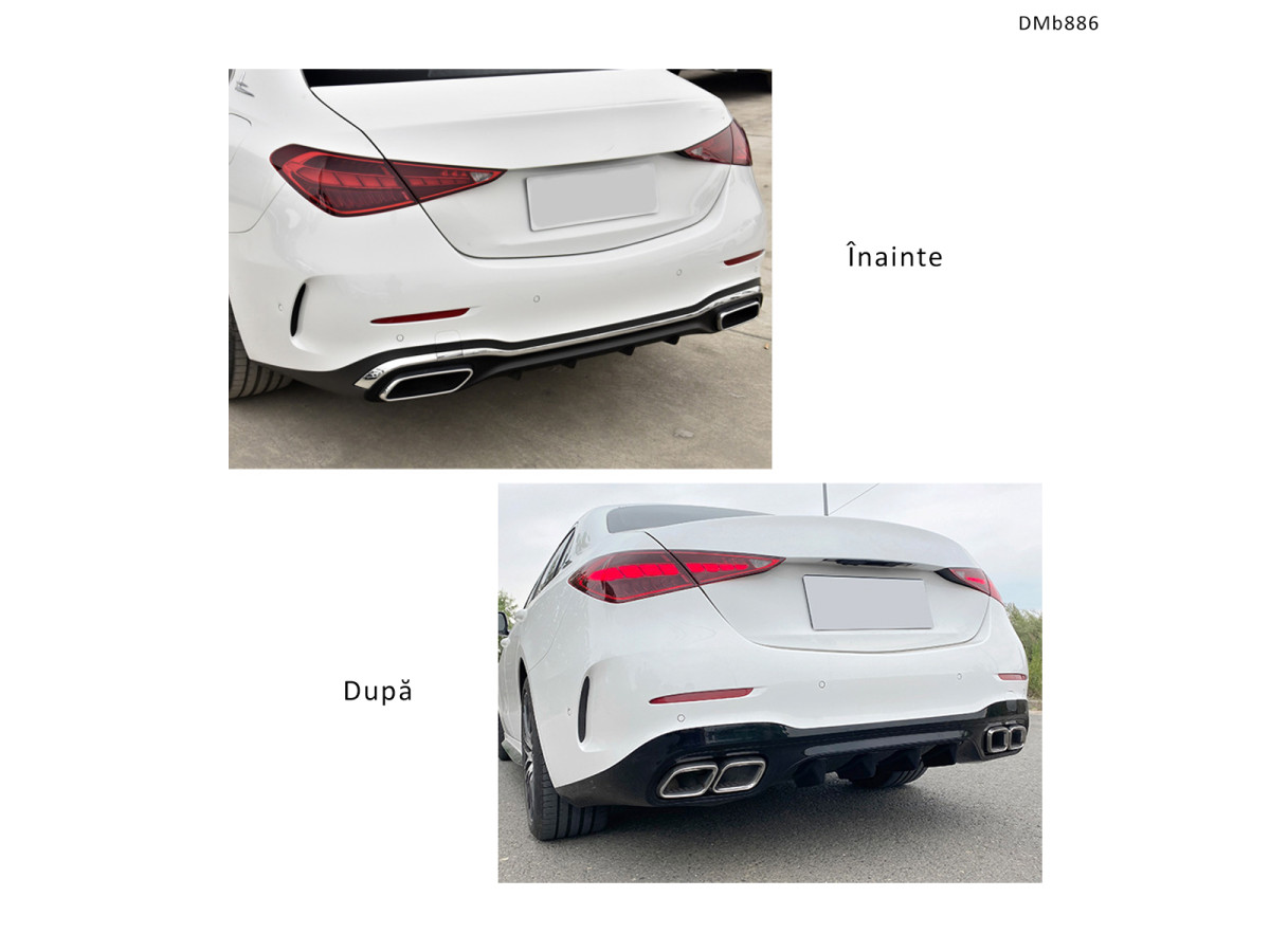 Cu setul difuzor spate și evacuare pentru Mercedes C AMG C63 W206 – DMb886, obții o combinație perfectă între stil sportiv, durabilitate și instalare fără complicații – tot ce ai nevoie pentru a transforma spatele mașinii într-un punct de atracție veritabil.