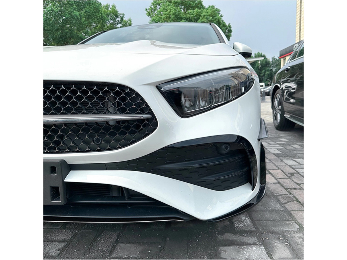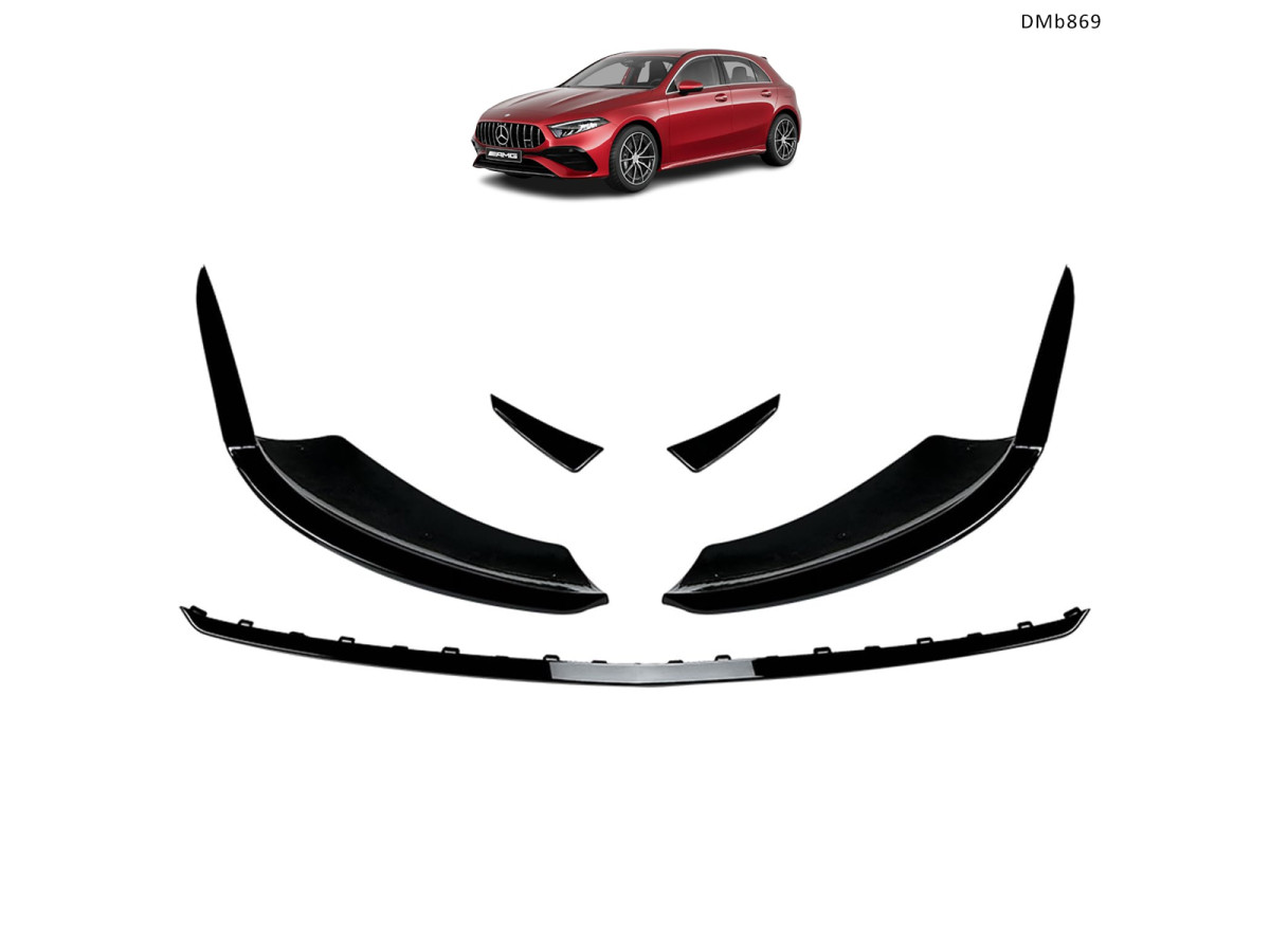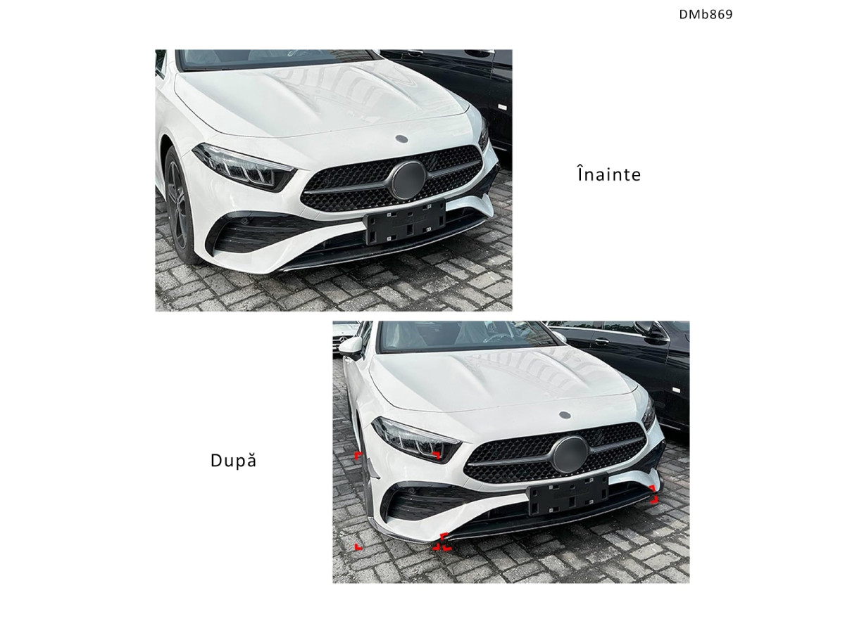 Îmbunătățiți aspectul vizual al Mercedes Clasa A W177 facelift 2023→ cu acest set eleron bara față și capace laterale conducte de aer – DMb869. Fabricat din ABS rezistent, setul include ambele componente care se montează direct pe bara față originală. Oferă un stil decis AMG și un aspect finisat, fără modificări ale structurii sau montaj complicat.